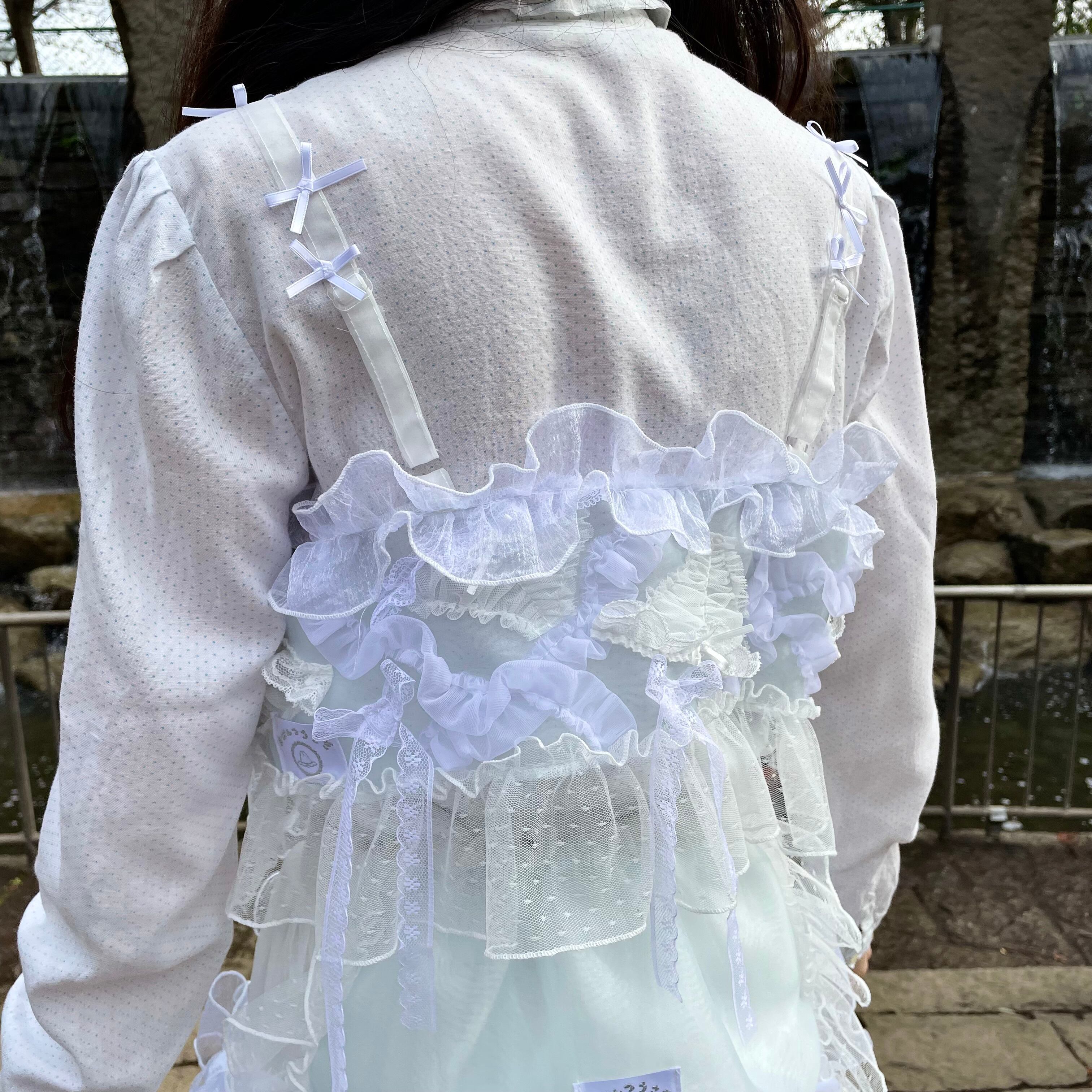 お水の流れのように縫いつけられたうねうねフリルや